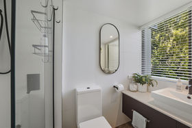 Enter No 2 down pretty paths and high white gates where flourishing gardens greet you. Vibrant Rhododendron, fragrant Jasmine, nodding Hydrangea, and tall white roses peeping over the fence are well-established and easily maintained. Facing north, sun streams in here all day and views over the Park and Avon are verdant and tranquil. Outdoor living is partly enclosed and covered, a sheltered space, and with the outdoor heater usable almost year round.