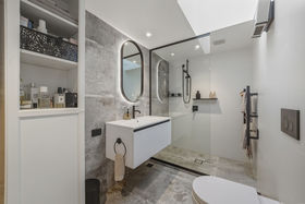 Inside, all is up to the minute with recent upgrading in the sleek galley kitchen, beautiful bathrooms and fresh décor throughout. Four double bedrooms provide options for guests and family. The current owner has converted one into a luxurious dressing room. The master has a lovely outlook from a sunny balcony. Storage is exceptional with cupboards at every turn, understairs, and a full height floored attic is accessed by a pull down loft ladder. Garaging is in the historic stables, and there are eleven extra parking spaces secure within this beautifully kept complex. Common areas are profusely planted and immaculate.