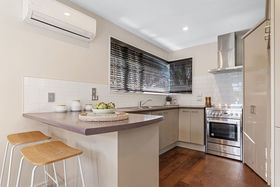 Set on a corner site of 450sqm, the house faces North and West, sheltered from our pesky easterly. Open plan kitchen and dining is light and airy with French doors to the North out to a sunny patio. The roomy living area has a bay window and French doors as well, flooding the room with sun and light. Nicely presented and very tidy, this is a most comfortable home with generous double garaging and ample parking for extra cars in the driveway.